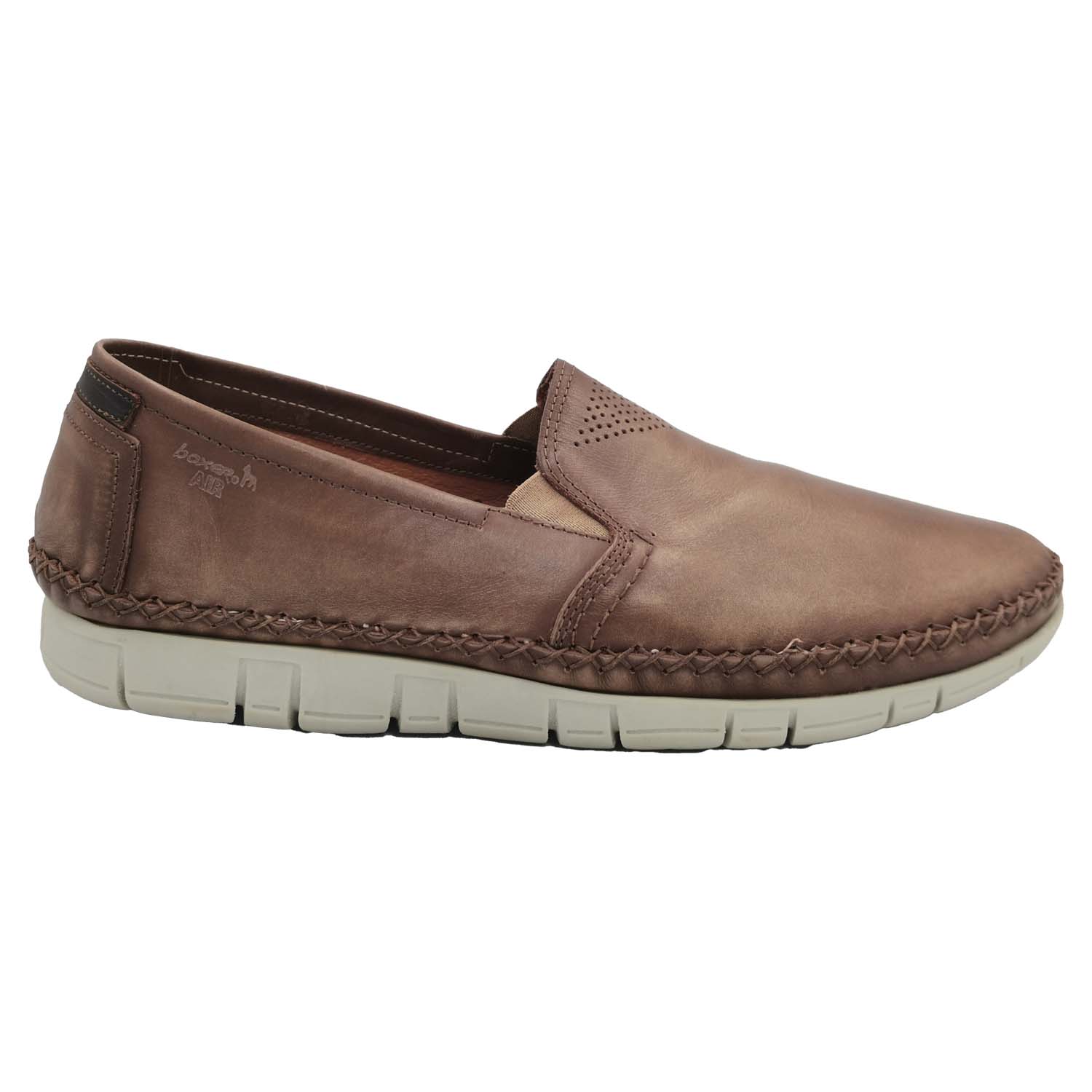 Ανδρικά παντοφλέ boat παπούτσια BOXER ελληνικής κατασκευής από γνήσιο μαλακό δέρμα εξαιρετικής ποιότητας σε χρώμα πούρο.Ιδανική επιλογή για πολύωρη χρήση. ΥΛΙΚΟ: Γνήσιο μαλακό δέρμα. ΣΟΛΑ: Αερόσολα αντιολισθητική.