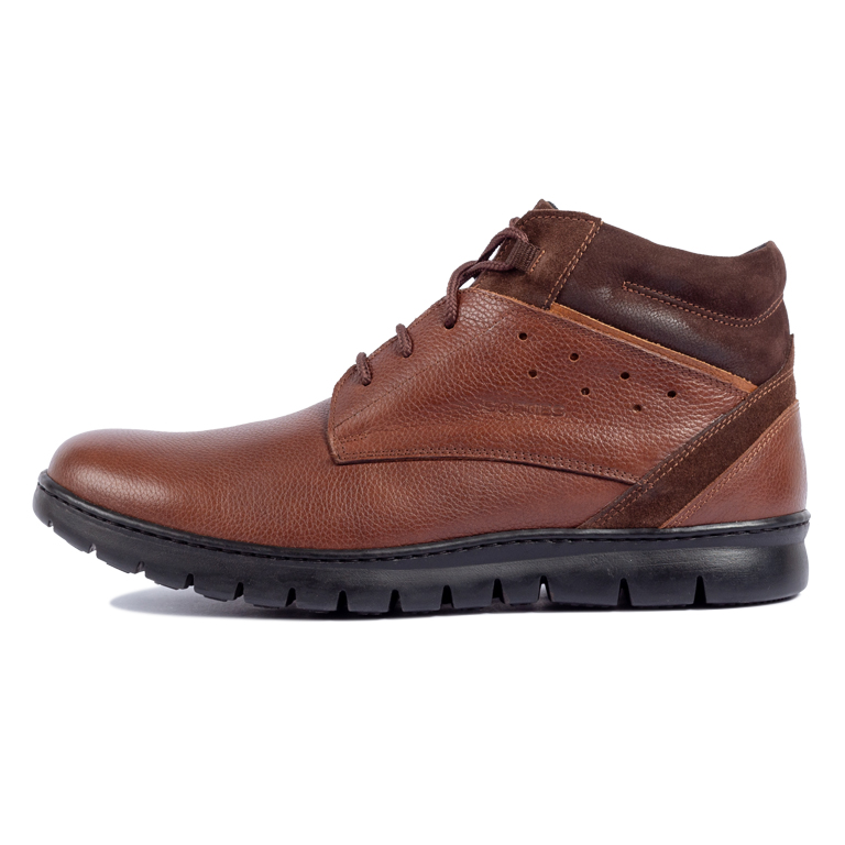 Ανδρικά μποτάκια της ελληνικής εταιρείας Softies από μαλακό δέρμα άριστης ποιότητας. Διαθέτουν υφασμάτινη επένδυση, δερμάτινο ανατομικό πάτο και ελαφριά αντιολισθητική σόλα από λάστιχο με τεχνολογία που απορροφάει τους κραδασμούς.
