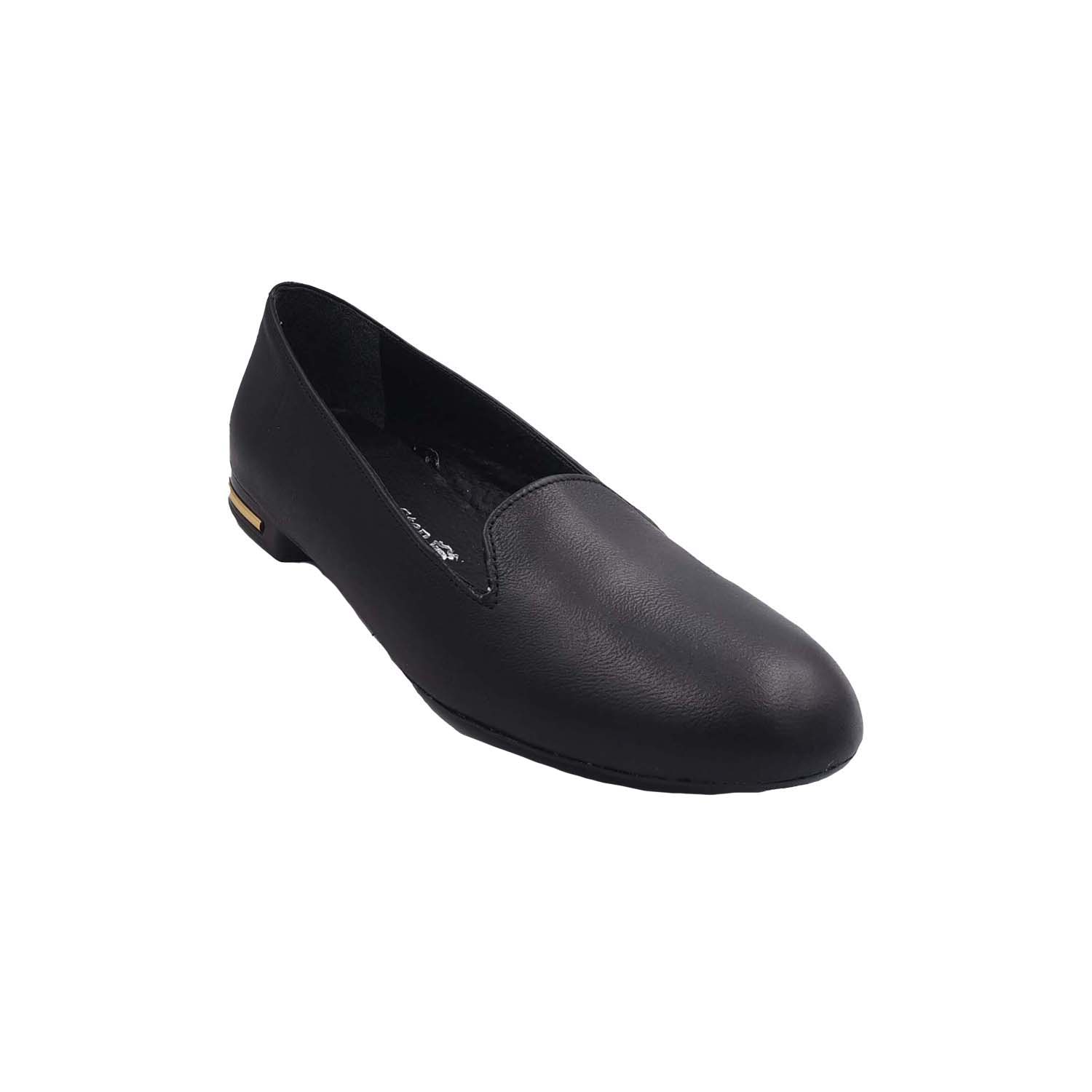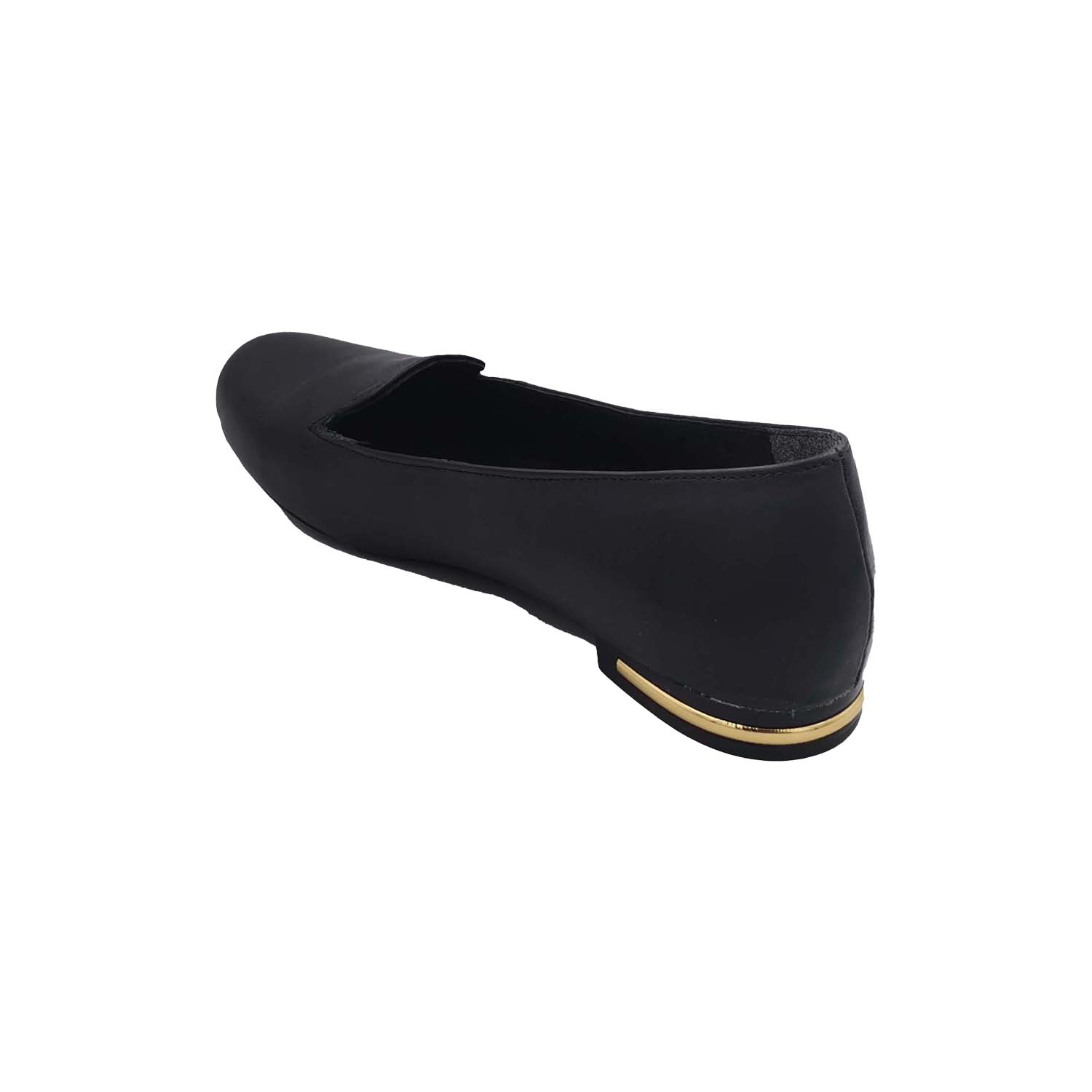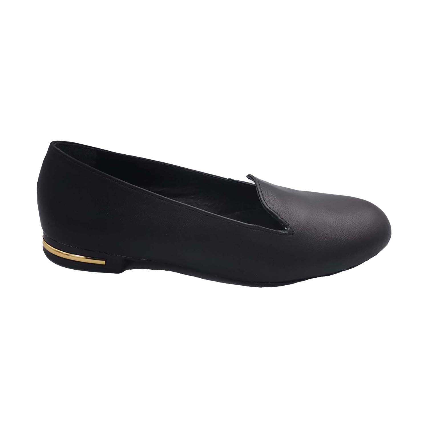 Δερμάτινη Μπαλαρίνα Σε Χρώμα Μαύρο Και Χρυσή Λεπτομέρεια Στο Τακούνι .