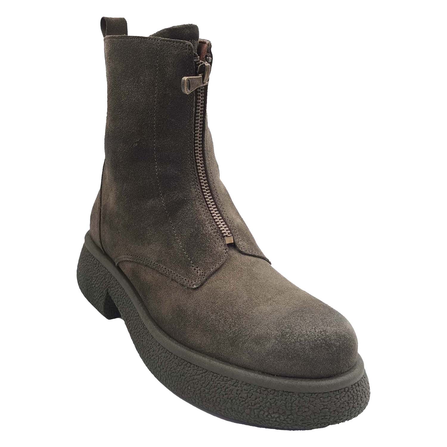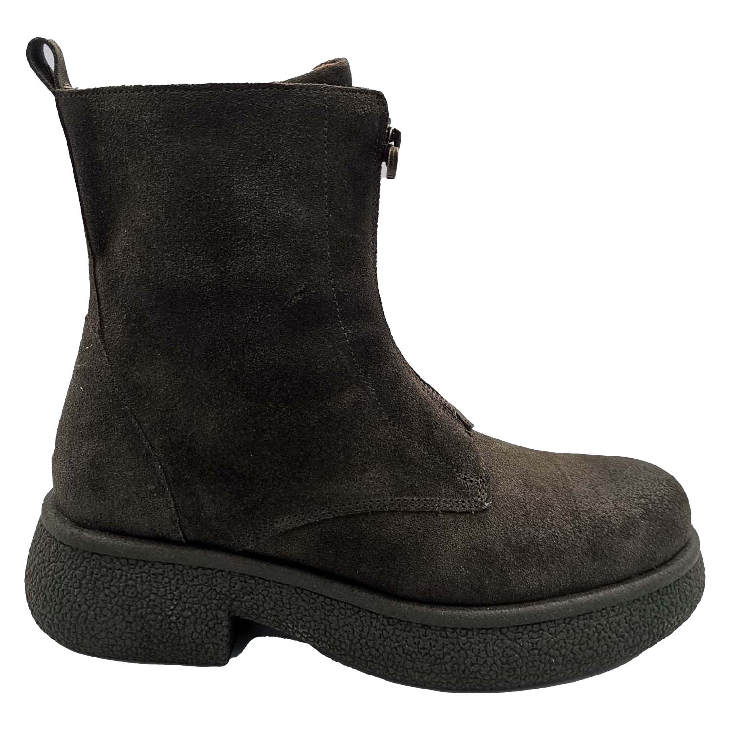 Γυναικείο Δερμάτινο Μποτακι Σε Χρώμα Λαδί Με Δέσιμο Φερμουάρ Και Υψος Τακουνιού 4cm.