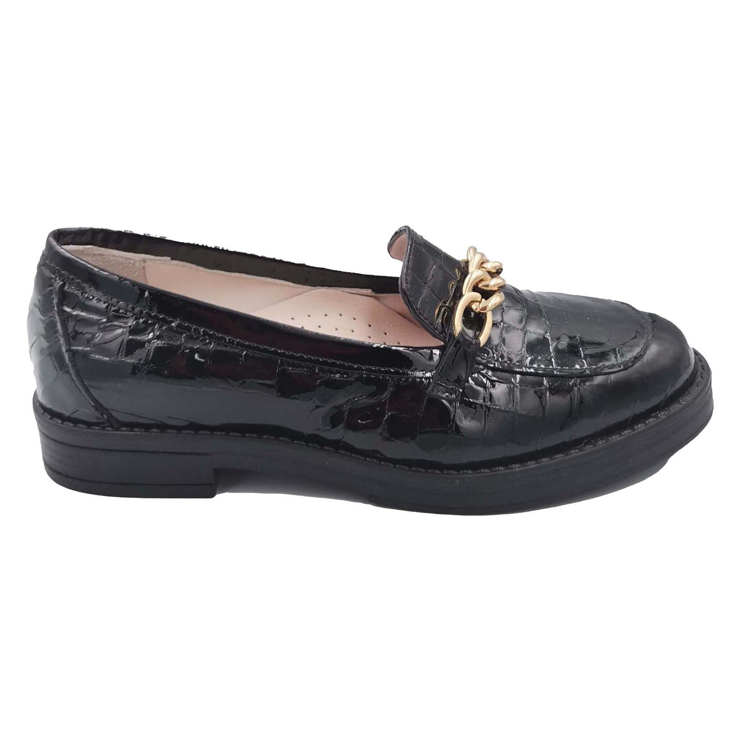 Δερμάτινο Μοκασίνι Σε Χρώμα Μαύρο Με Υψος Τακουνιού 3cm.